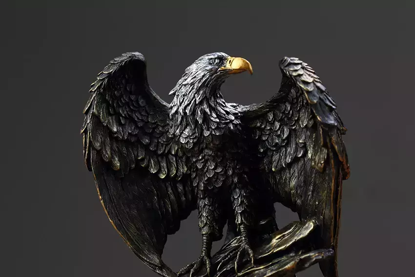 Cada detalhe da escultura foi cuidadosamente trabalhado para representar a beleza e a força dessa ave magnífica. Seu acabamento refinado destaca as asas abertas em pleno voo, transmitindo movimento, energia e grandeza. A tonalidade equilibrada ressalta os contornos e cria um efeito visual impactante, perfeito para quem busca uma peça de destaque em sua decoração.